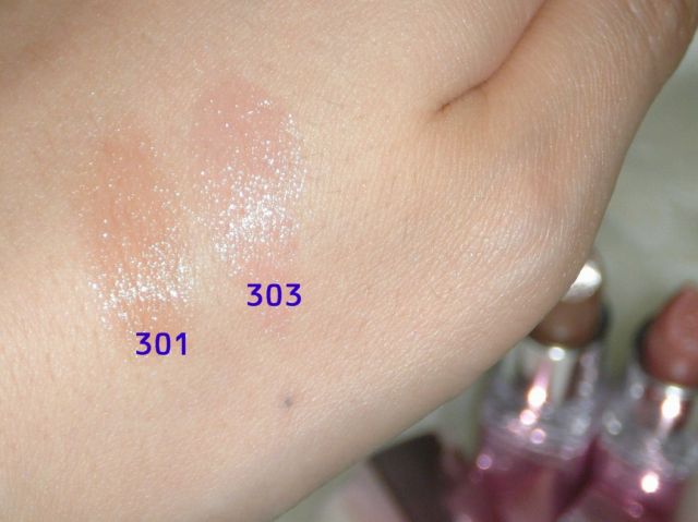 「301クリスタルベージュ」と「303ダイヤモンドピーチ」をお試しさせていただきました。