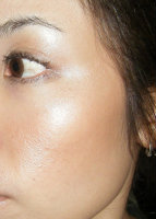 嬉しいのは、陰影効果なのか錯覚なのか、ブロンザーを塗ってない部分の肌がやけに白く見えるようになること。