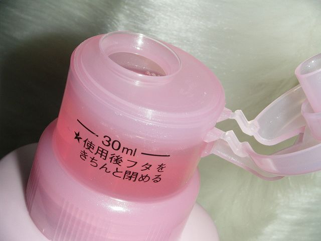 計量キャップで量ったときは透明ピンクの液体でしたが