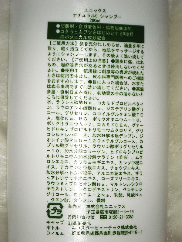 『UNIX ナチュラルケアシャンプー』をいただきました。