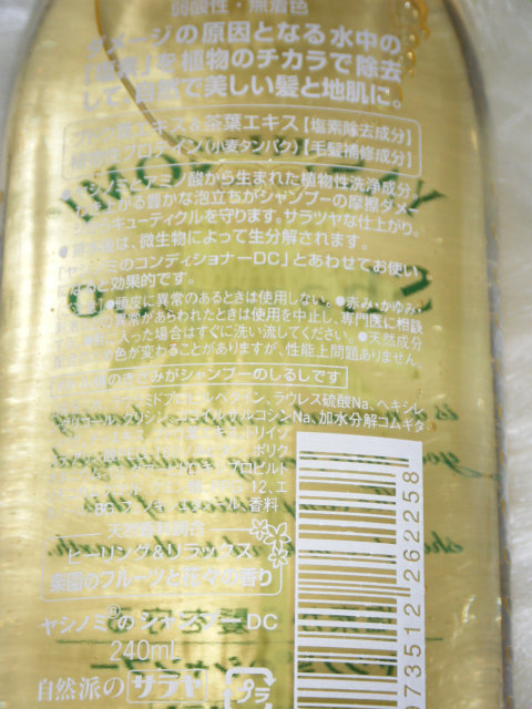 とは言え、コンディショナーにはシリコンが入ってたりするし、シャンプーの洗浄主成分は天然由来だけどラウレス硫酸Naも使われてたりするので、このへんを気になさる方は、サラヤさんにどれくらい配合されてるのか問い合わせてみるといいかも。