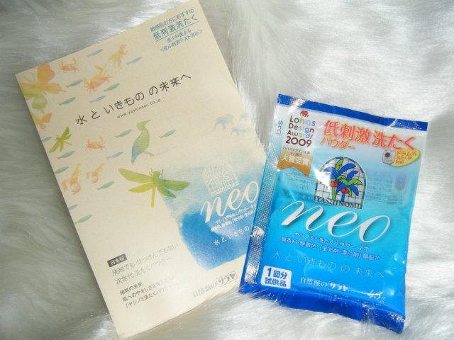 シャンプー&コンディショナーお試しセットに、「ヤシノミ洗たくパウダー ネオ」という低刺激洗たくパウダー1回分がオマケでついてきました。