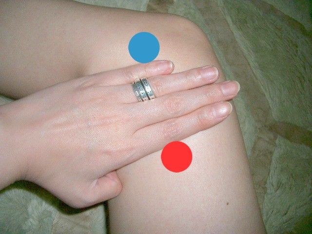 そこから指4本分の赤丸印のあたりが ツボだそうです。