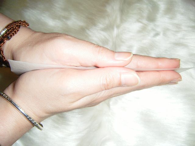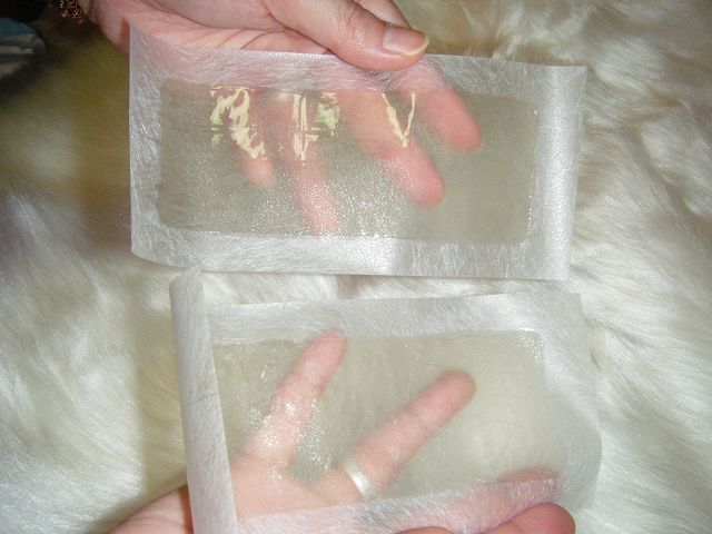 1組のワックスシートをこうして手のひらで温めると、中のワックスが柔らかくなってシートを分けやすくなります。