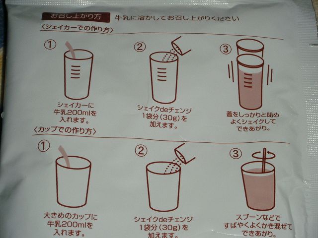 200mlの牛乳とシェイクdeチェンジを入れて、シェイク!