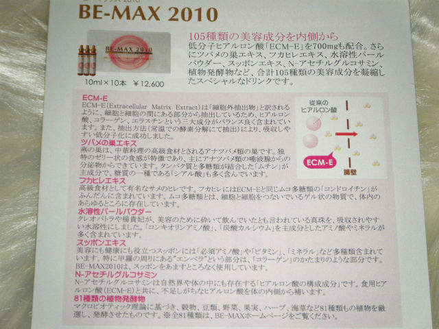 BE-MAX2010は、前日に1本飲むだけで肌パワーがぐんとアップする感じ。