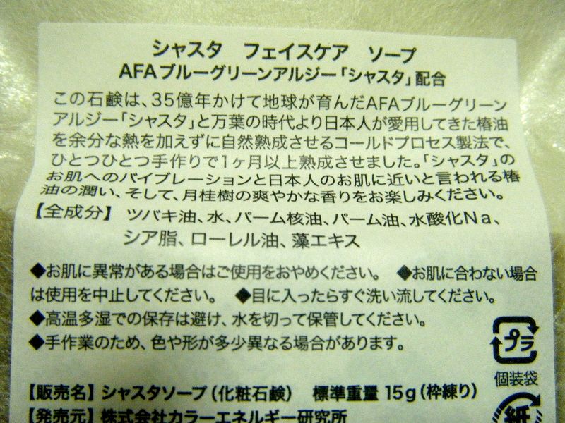 その「シャスタ」の粉末を練りこんだ石鹸なんです。