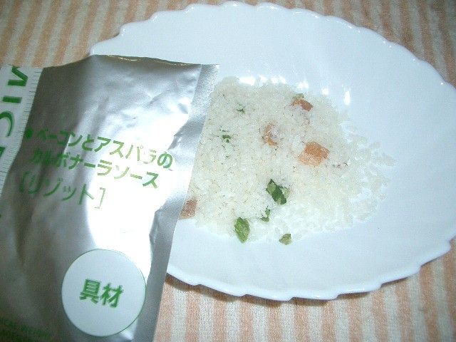 早速、「ベーコンとアスパラのカルボナーラソース」