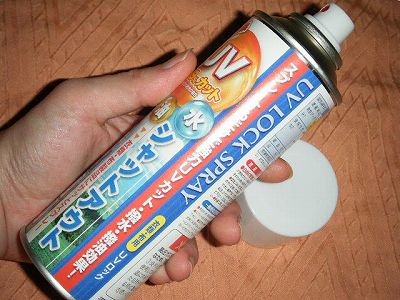 日傘の場合は外に出て道路でプシューっとやっちゃいます。