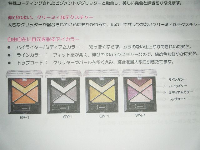 パレットは「BR-1」、「GY-1」、「GN-1」、「WN-1」の4種類。